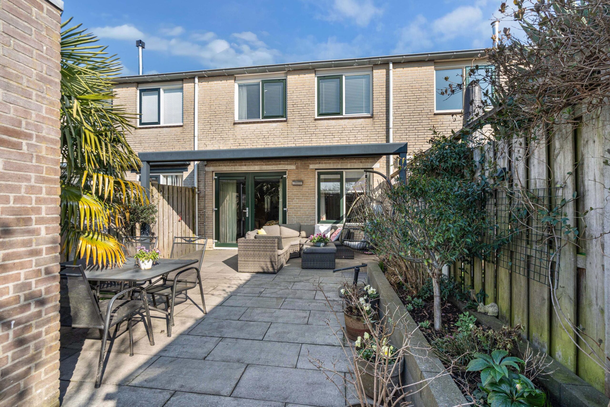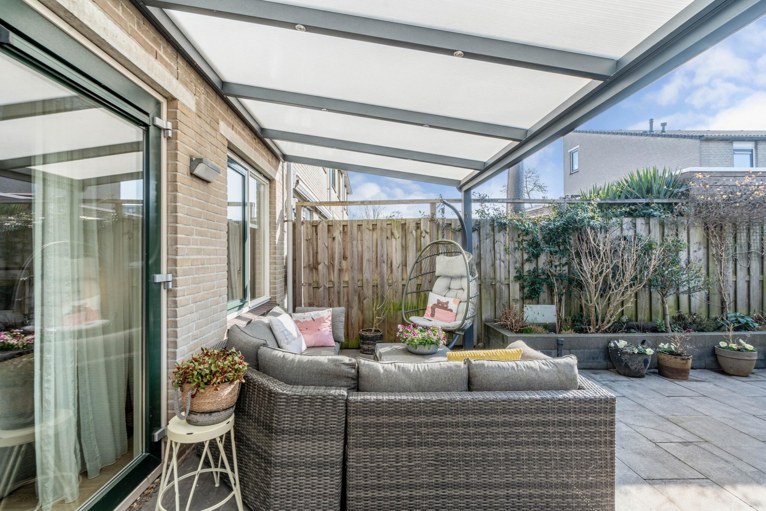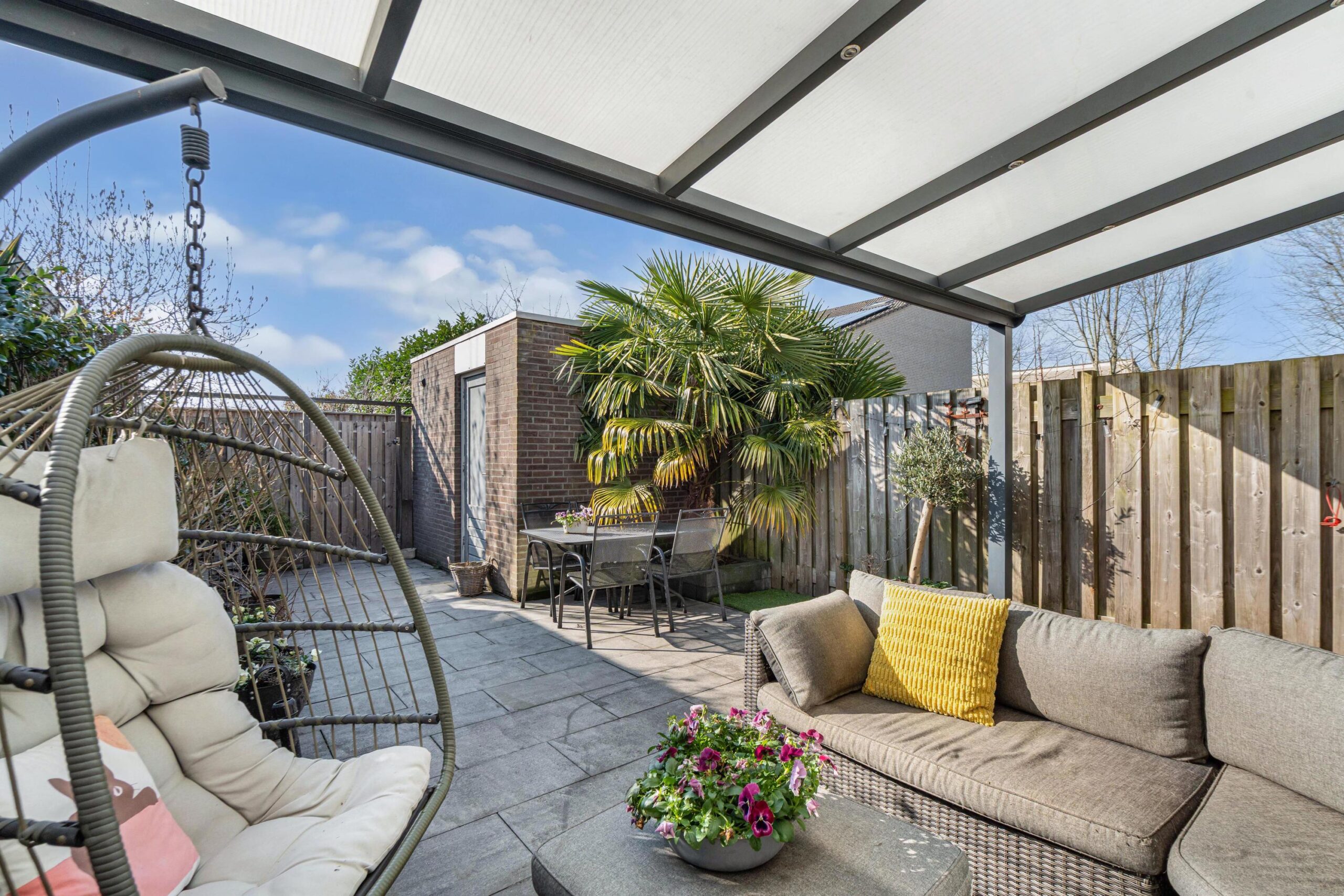 - Zonnige achtertuin (2020) met overkapping gelegen op het zuidwesten;
