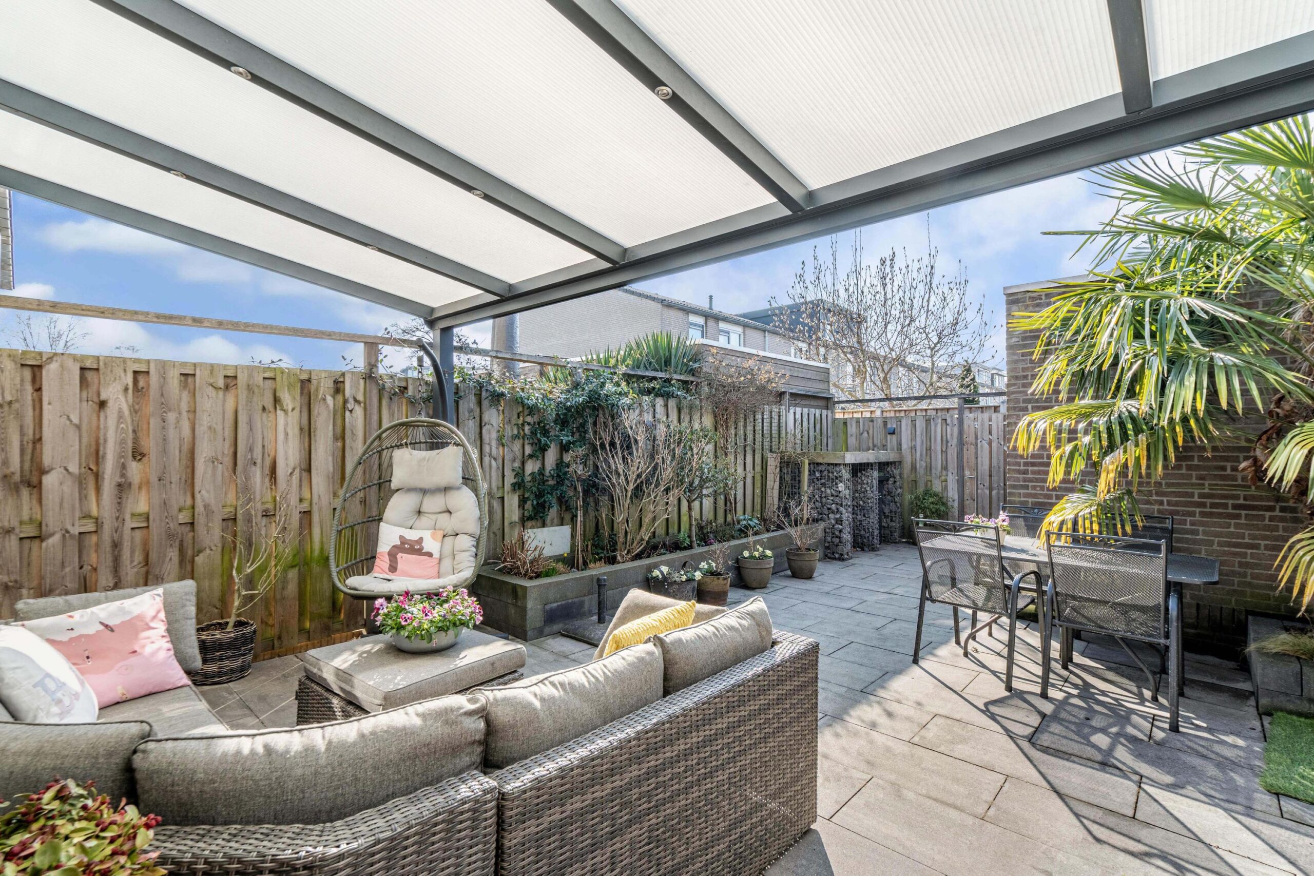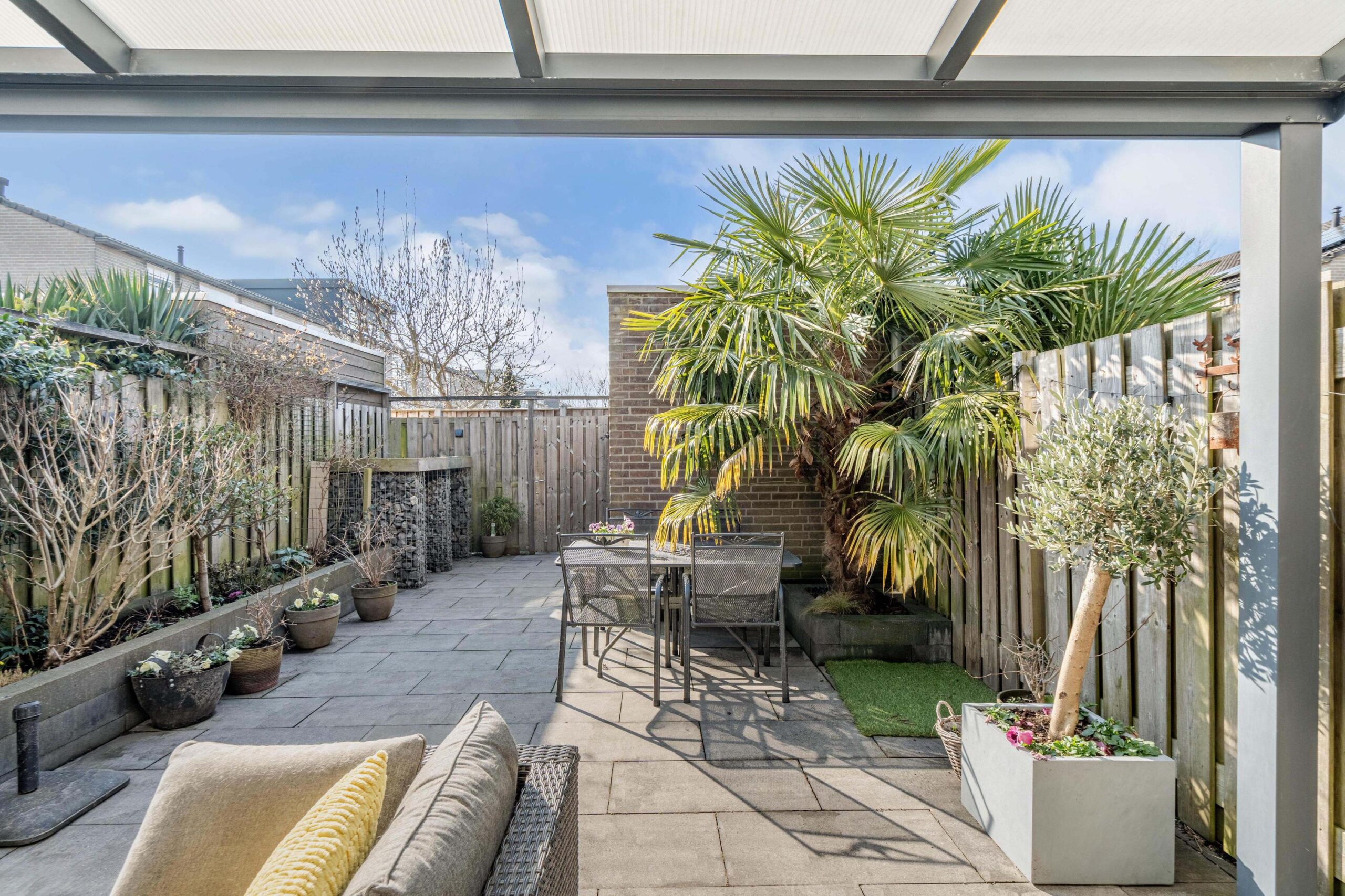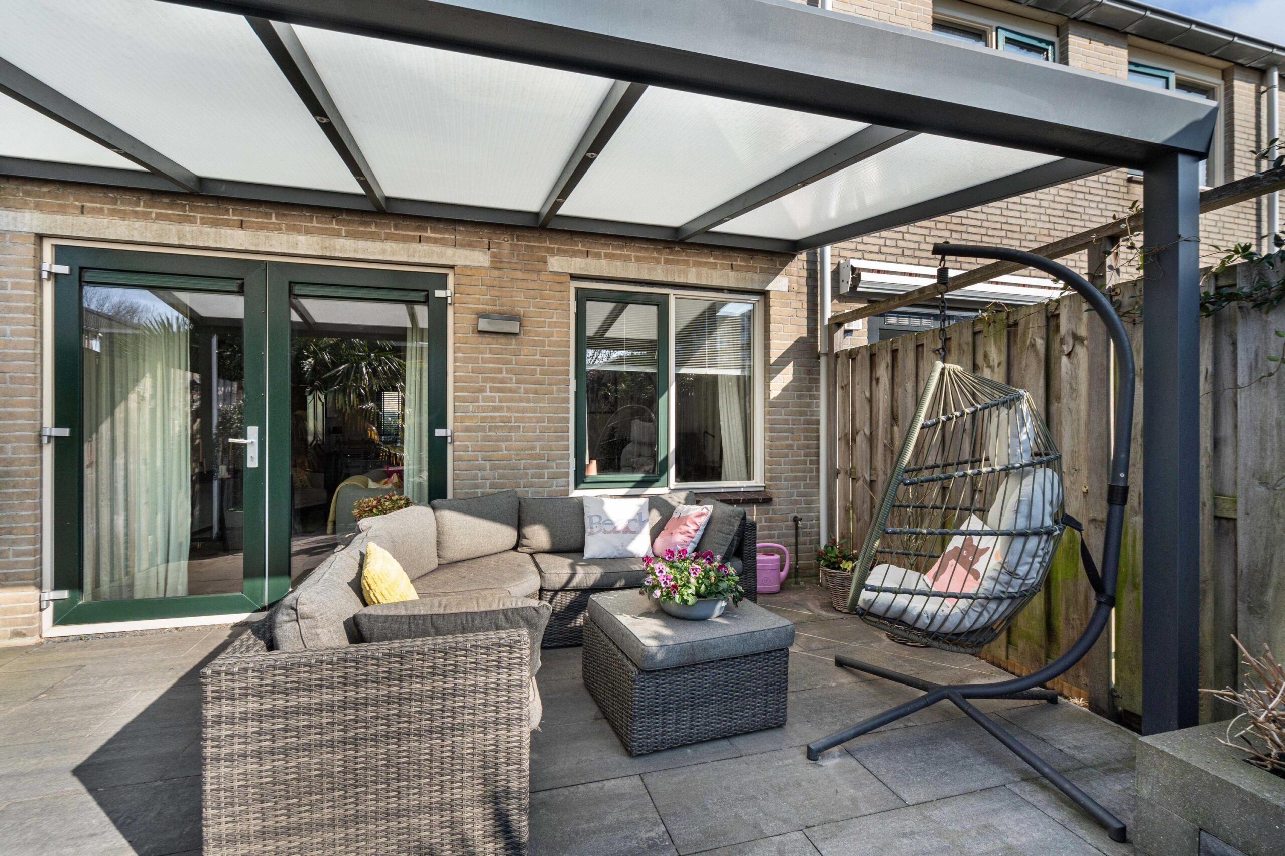 - Zonnige achtertuin (2020) met overkapping gelegen op het zuidwesten;