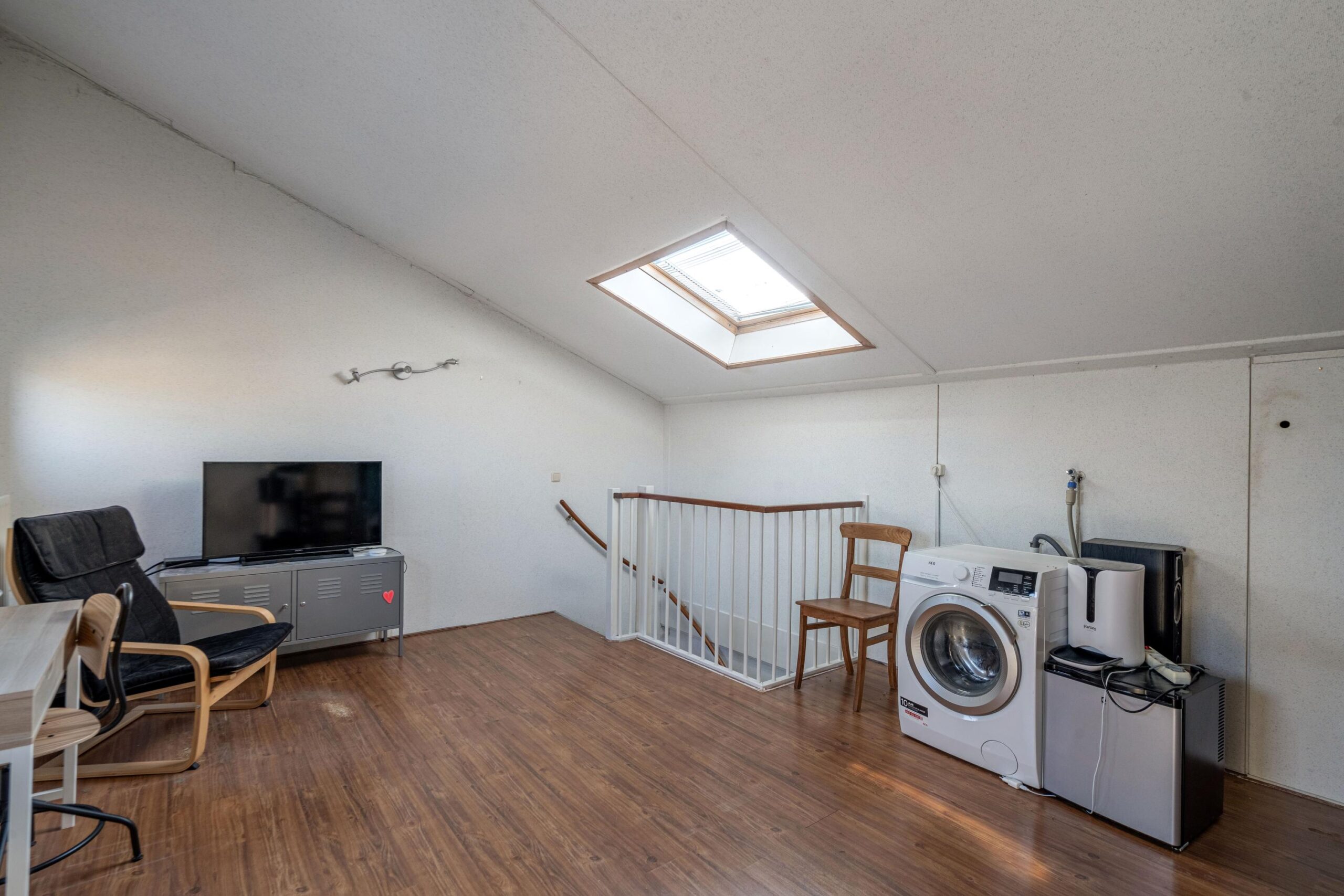 De zolderverdieping is afgesloten met een deur en bereikbaar via een vaste trap en biedt volop mogelijkheden. Er is een laminaatvloer en er zijn 2 veluxdakramen. Op zolder vindt u de aansluiting voor de wasmachine. Achter het grote knieschot is volop bergruimte aanwezig!