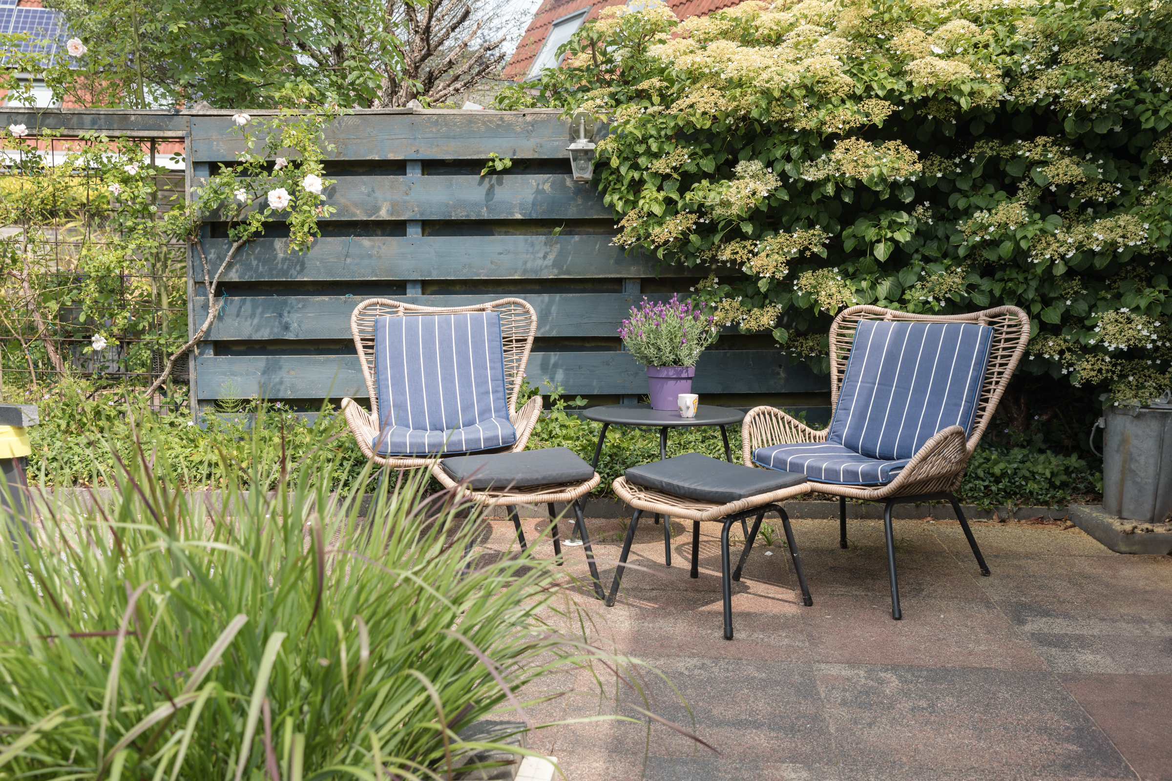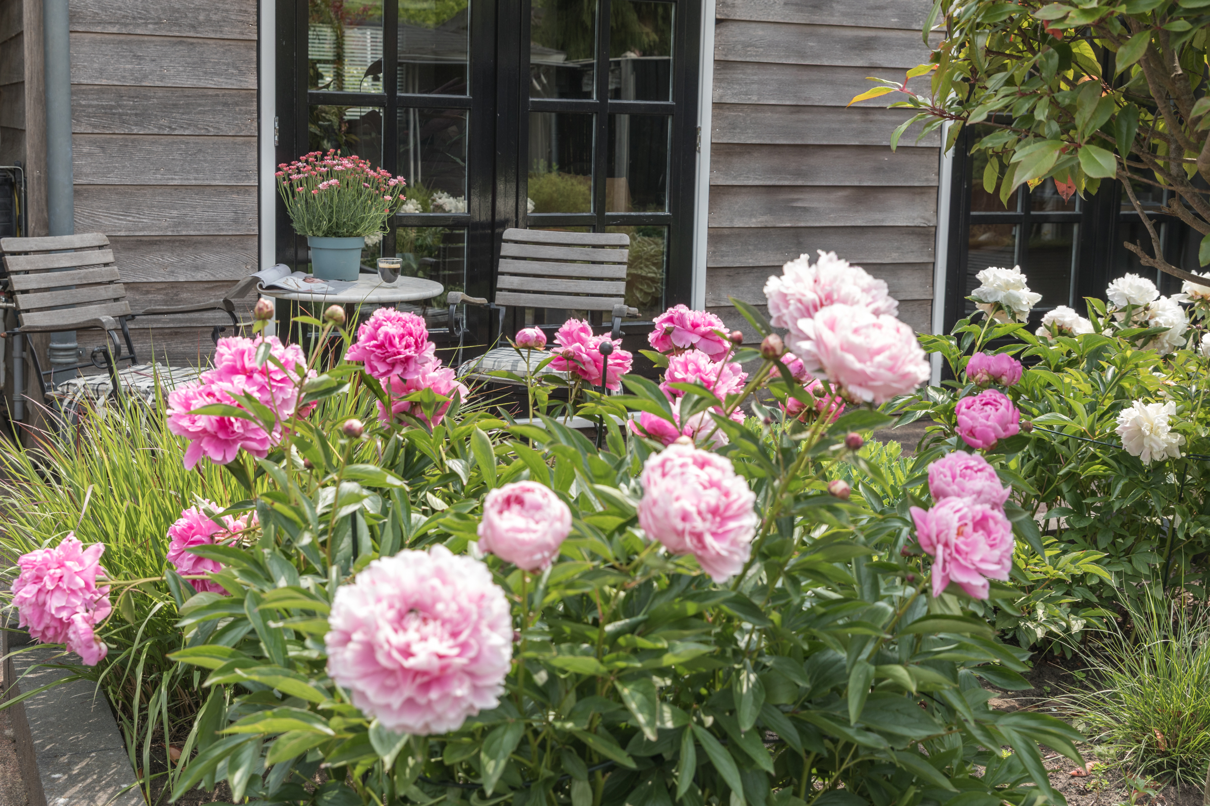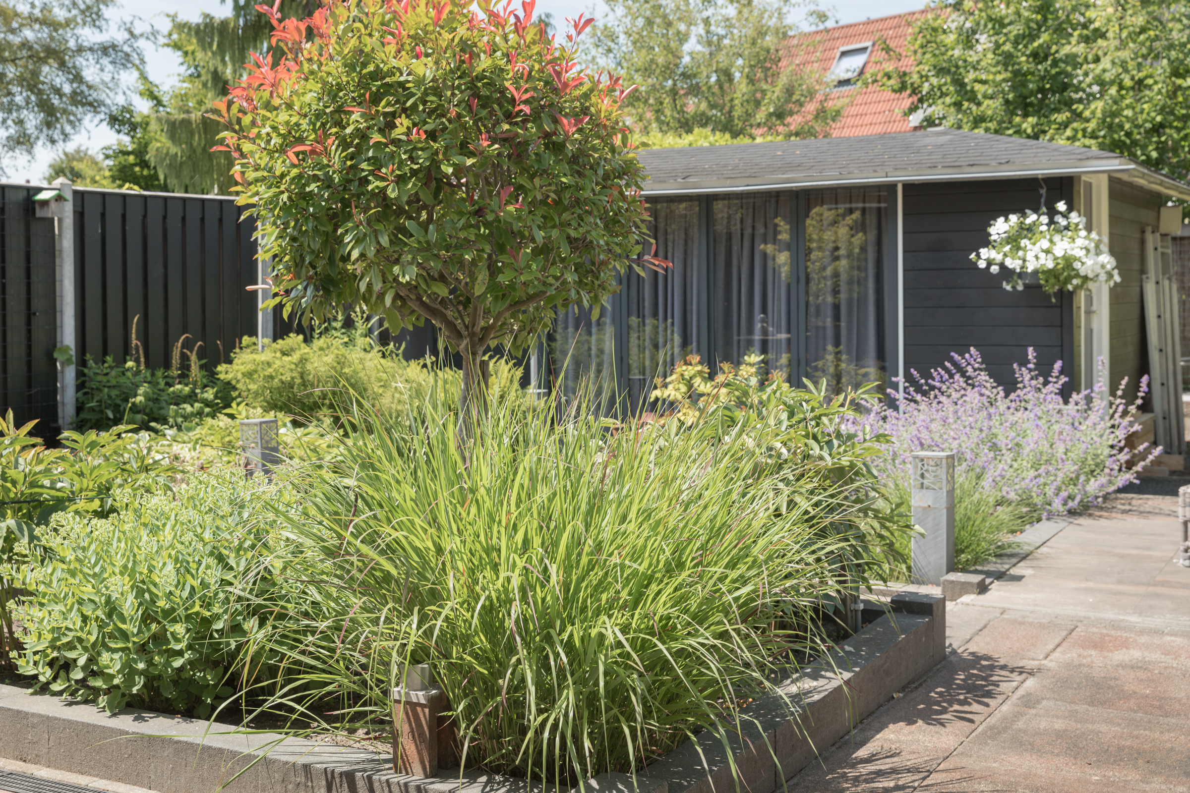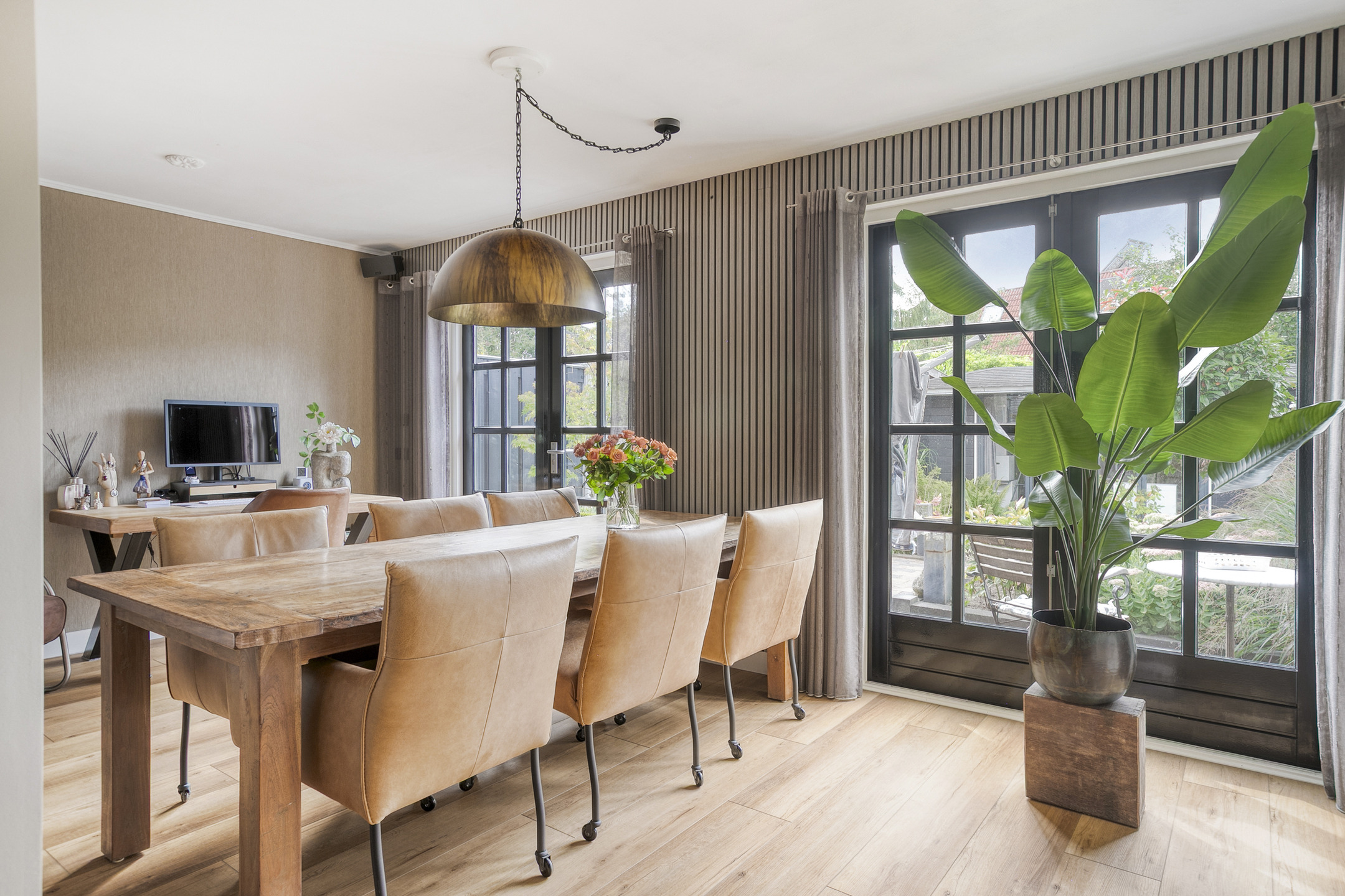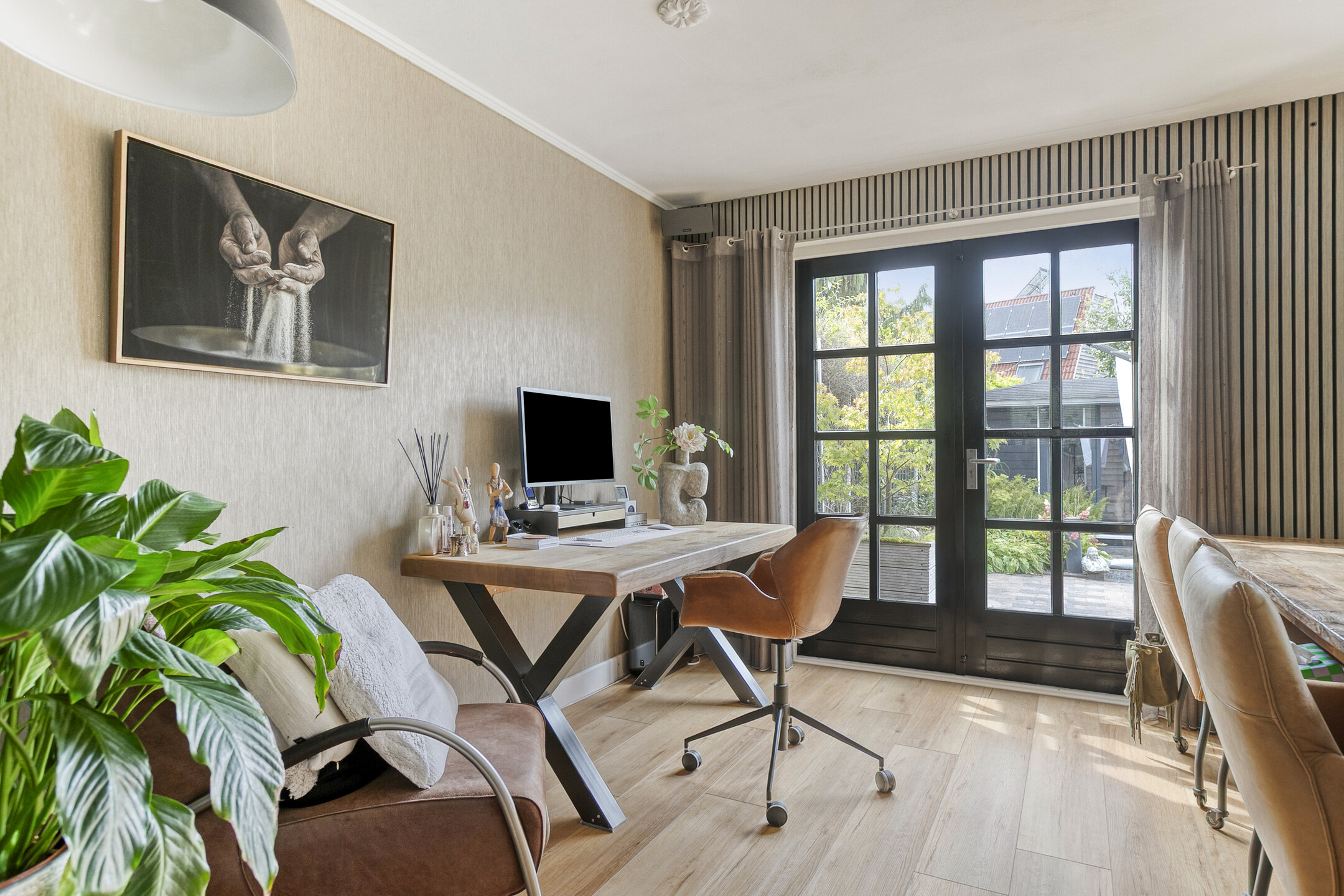 De achtertuin is keurig aangelegd met tegels en diverse borders vol met groen. De tuin is omheind met houten schuttingen en beschikt over diverse elektra-/ en waterpunten. Tegen de achtergevel is een groot elektrisch zonnescherm geplaatst en naast de woning is een grote overkapping. Achterin de tuin staat een mooie studio welke is geïsoleerd en beschikt over elektra. De studio kunt u gebruiken als werkplek, hobbyruimte of u kunt het verbouwen naar een slaapkamer met badkamer (waterpunt ligt naast de studio). Ideaal voor een thuiswonend kind! De studio heeft harmonicadeuren die u kunt openzetten om de tuin erbij te betrekken. Achter de studio heeft u nog een houten schuur voor extra opslag van uw tuingereedschap.