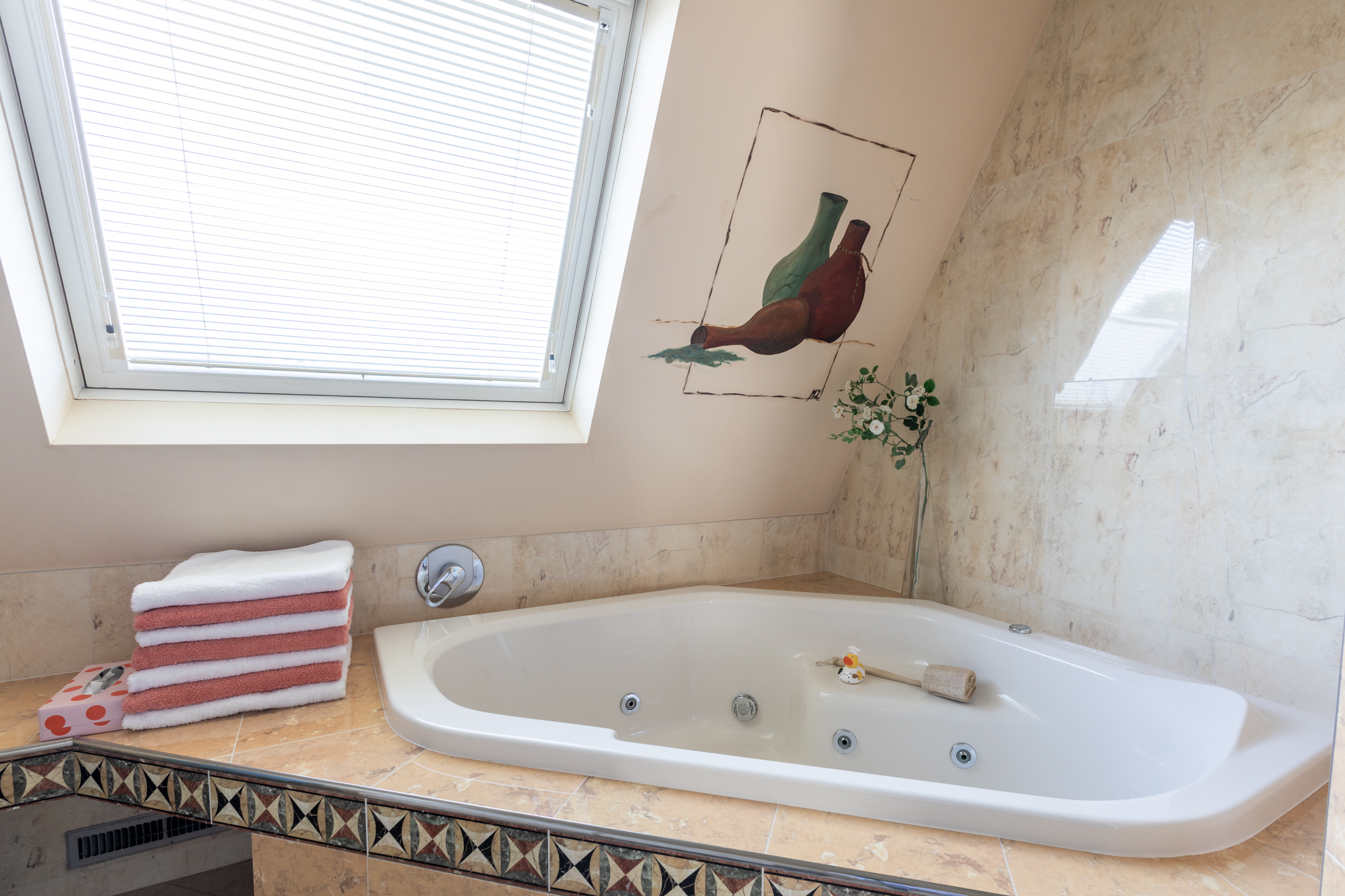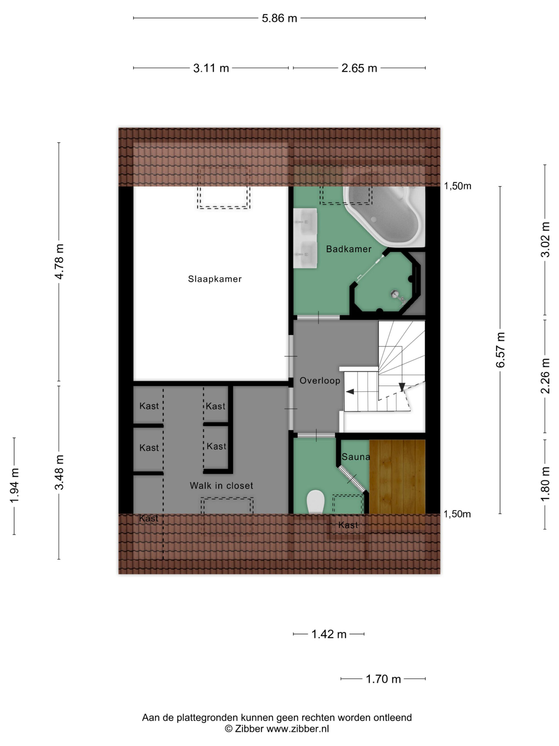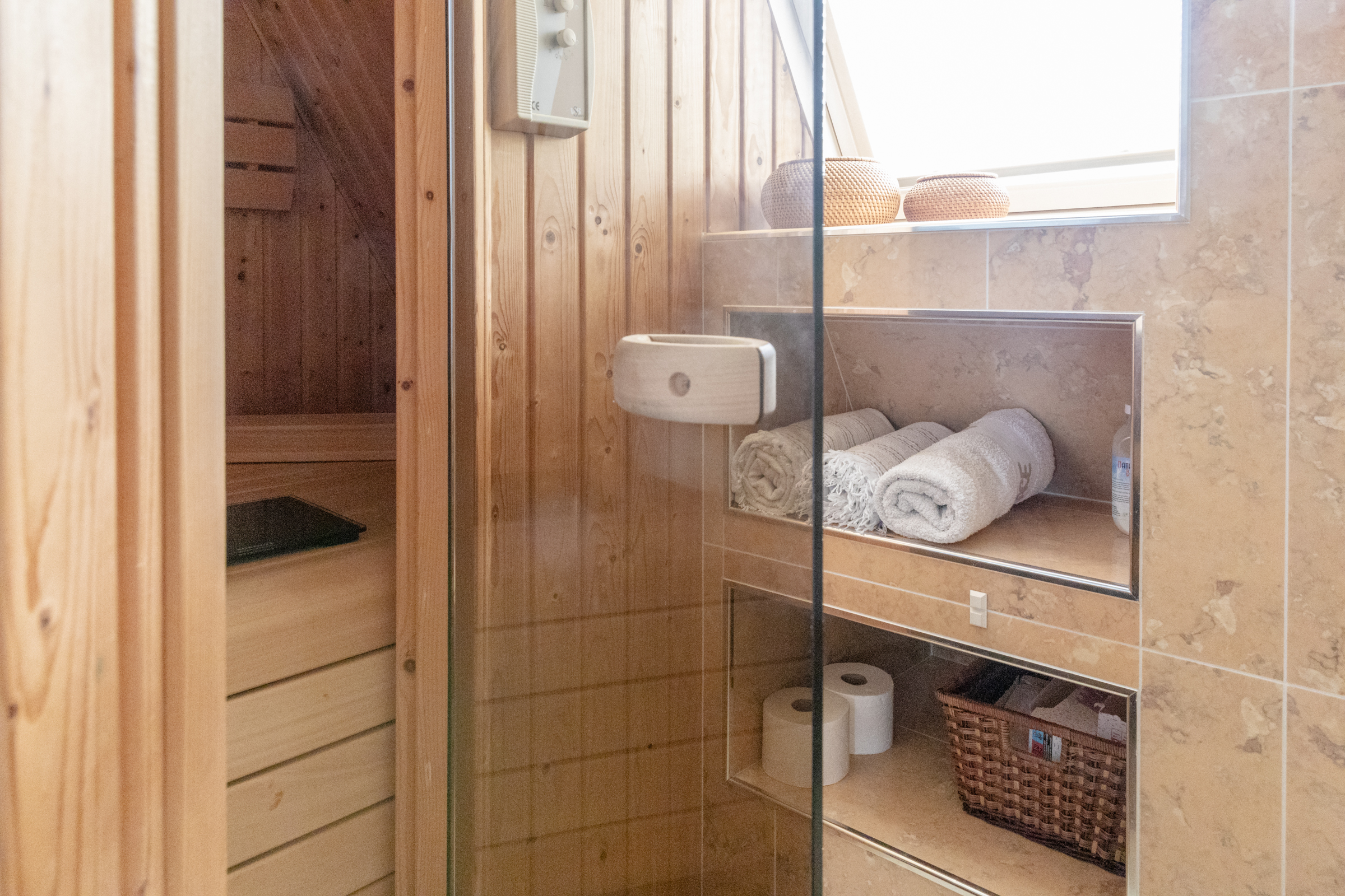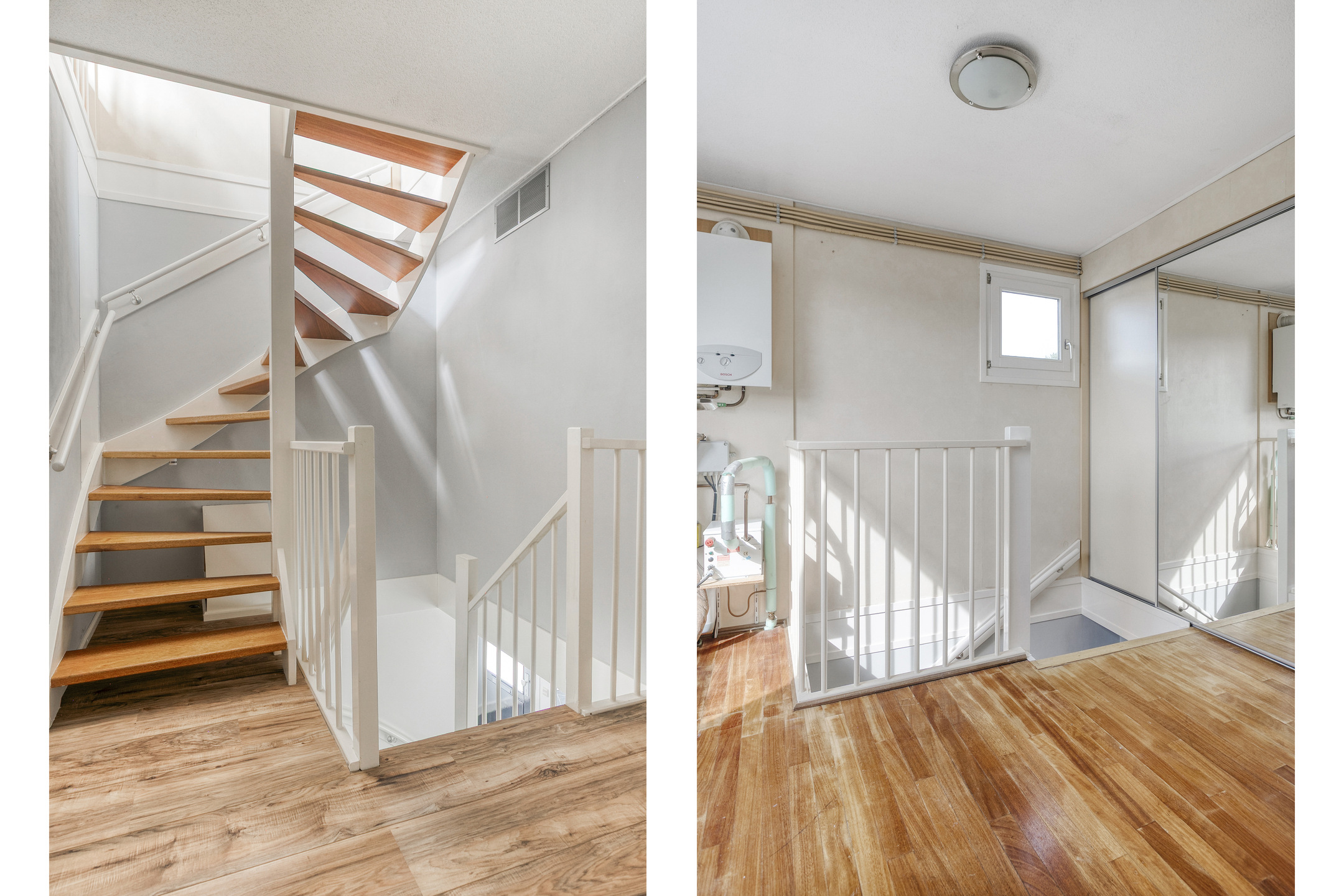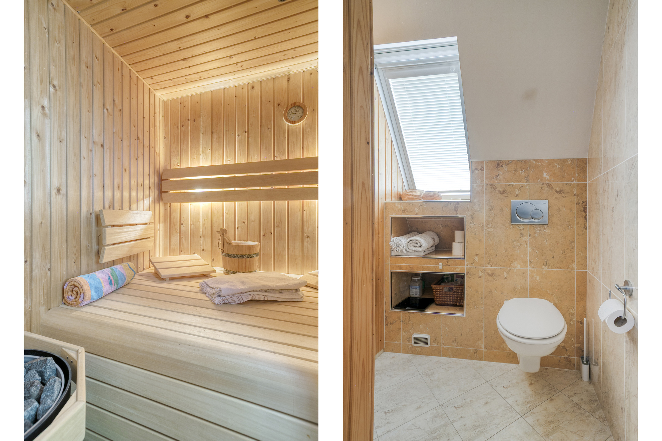 U komt de trap op en komt uit op de overloop. Vanuit de overloop heeft u toegang tot 2 slaapkamers variërend in grootte. De masterbedroom is gelegen aan de achterzijde en beschikt over voldoende ruimte voor het plaatsen van een groot tweepersoonsbed en een kastenwand. Er is een dakraam met hor. Aan de voorzijde is de 2e slaapkamer welke op dit moment in gebruik is als ruime inloopkast. De kamers zijn voorzien van een nette laminaatvloer die is geïsoleerd voor het geluid. Aan de voorzijde is de saunakamer met 2e toilet. De saunakamer beschikt over een dakraam en is betegeld. Aan de achterzijde is de grote badkamer gelegen. De badkamer is voorzien van een stoomcabine met douche en zitjes, een groot ligbad (pomp van de whirlpool is stuk) en een dubbele wastafel met meubel en een spiegel. Het plafond is voorzien van inbouwspots en speakers.