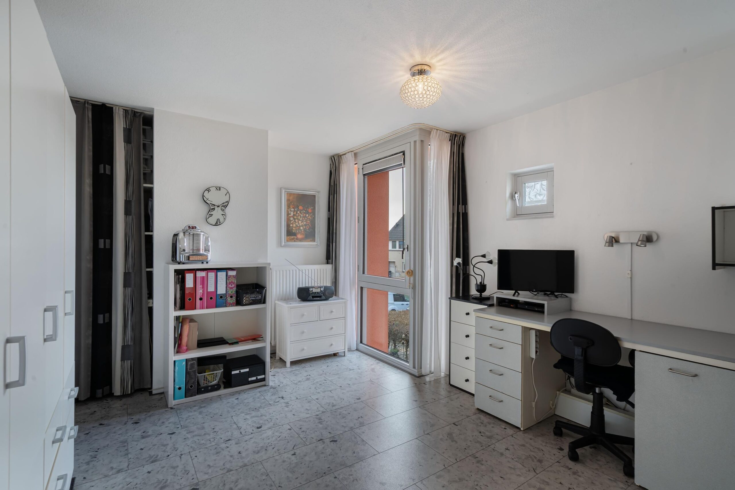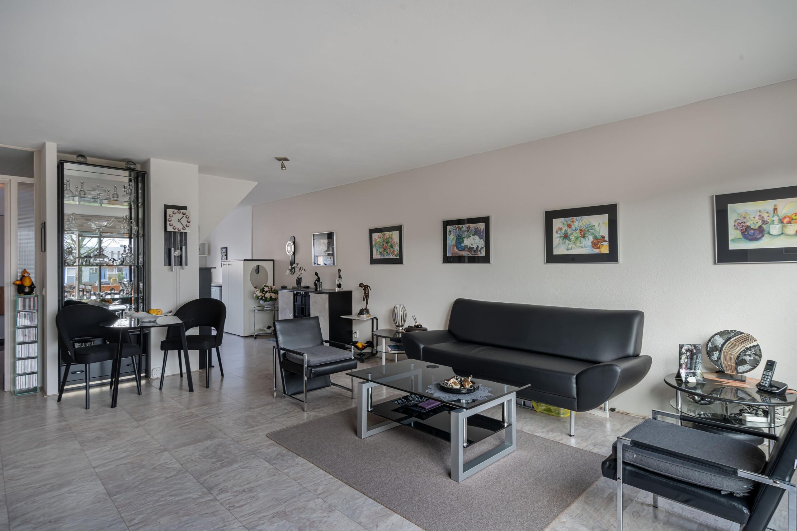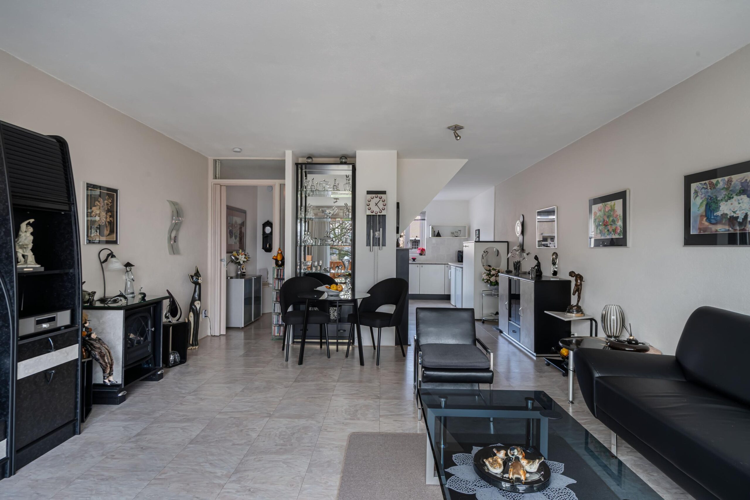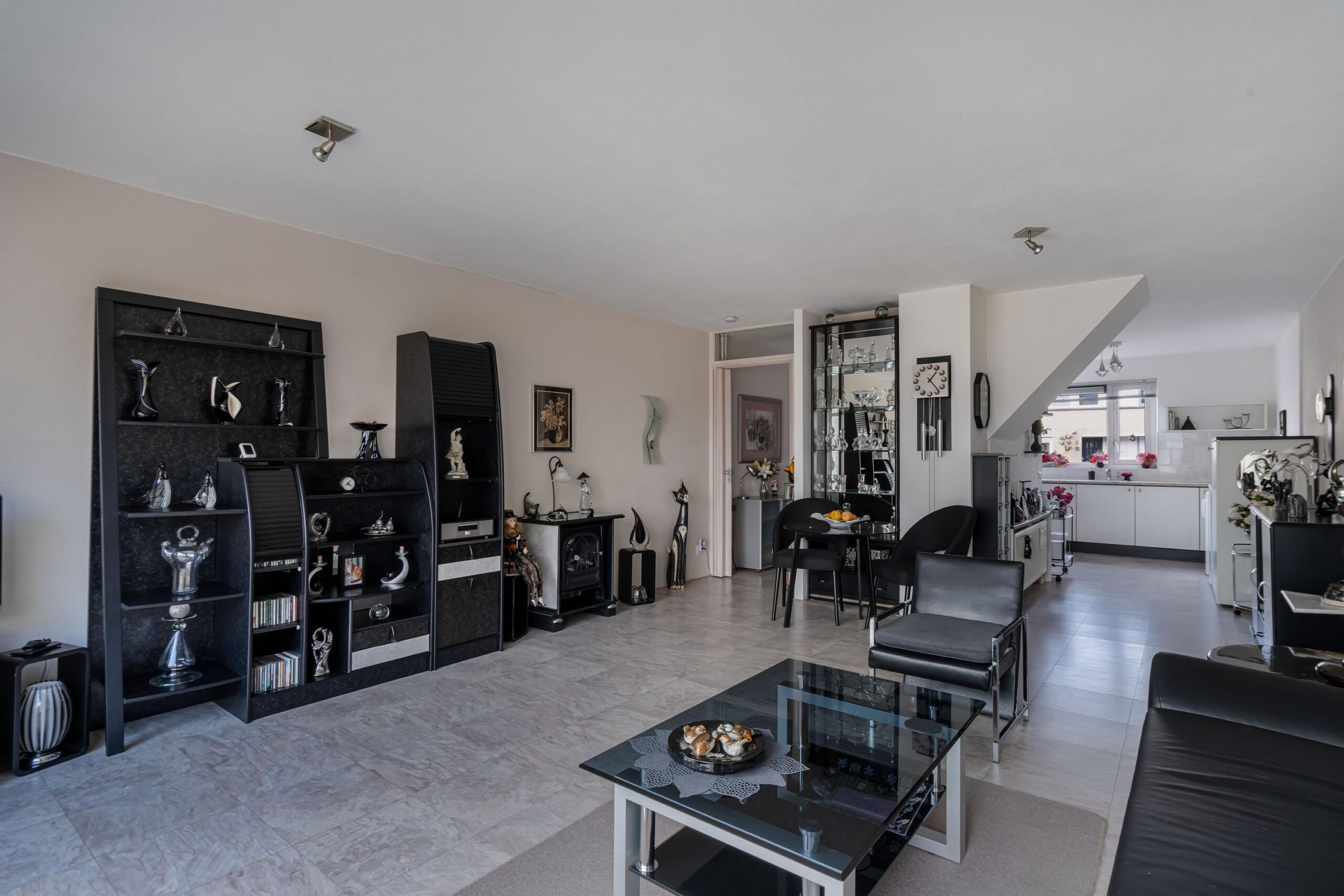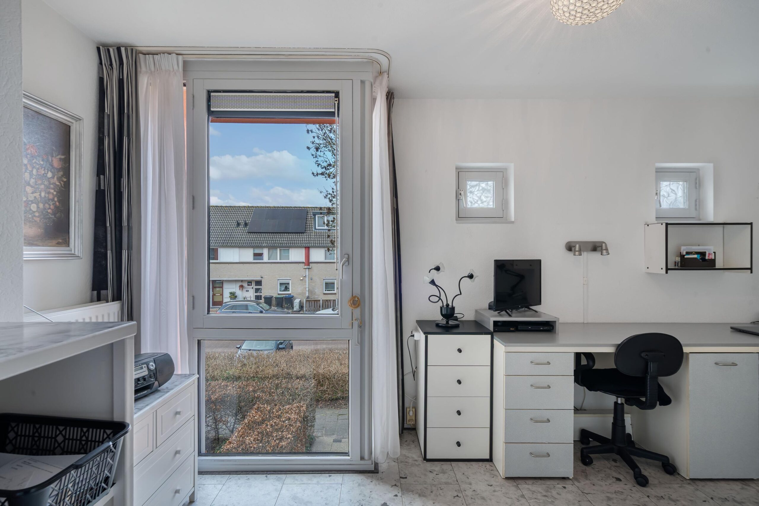 - Lichte woonkamer met grote schuifpui;