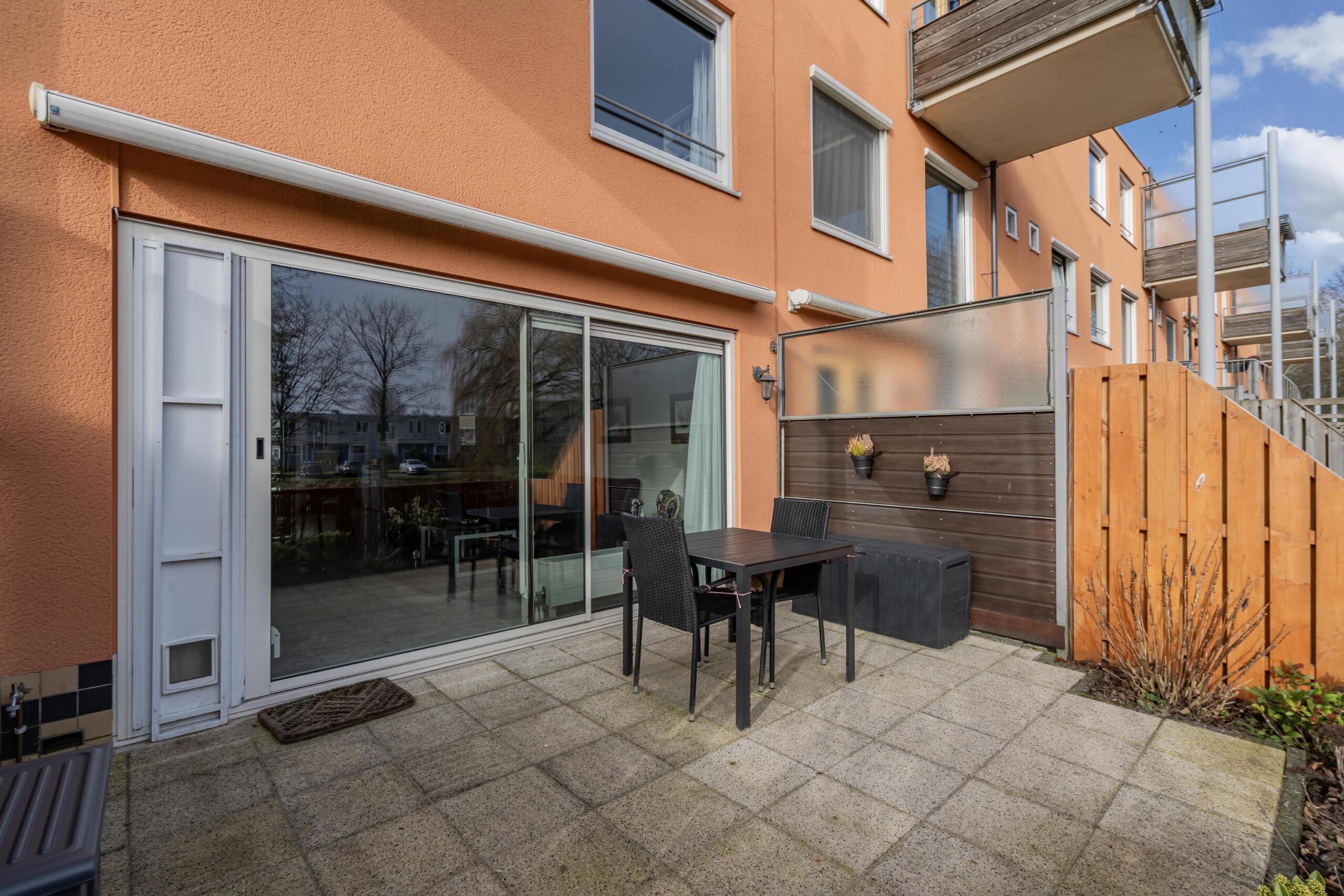 Via de schuifpui bereikt u het terras en de achtertuin, een heerlijke plek om te ontspannen en tot rust te komen.