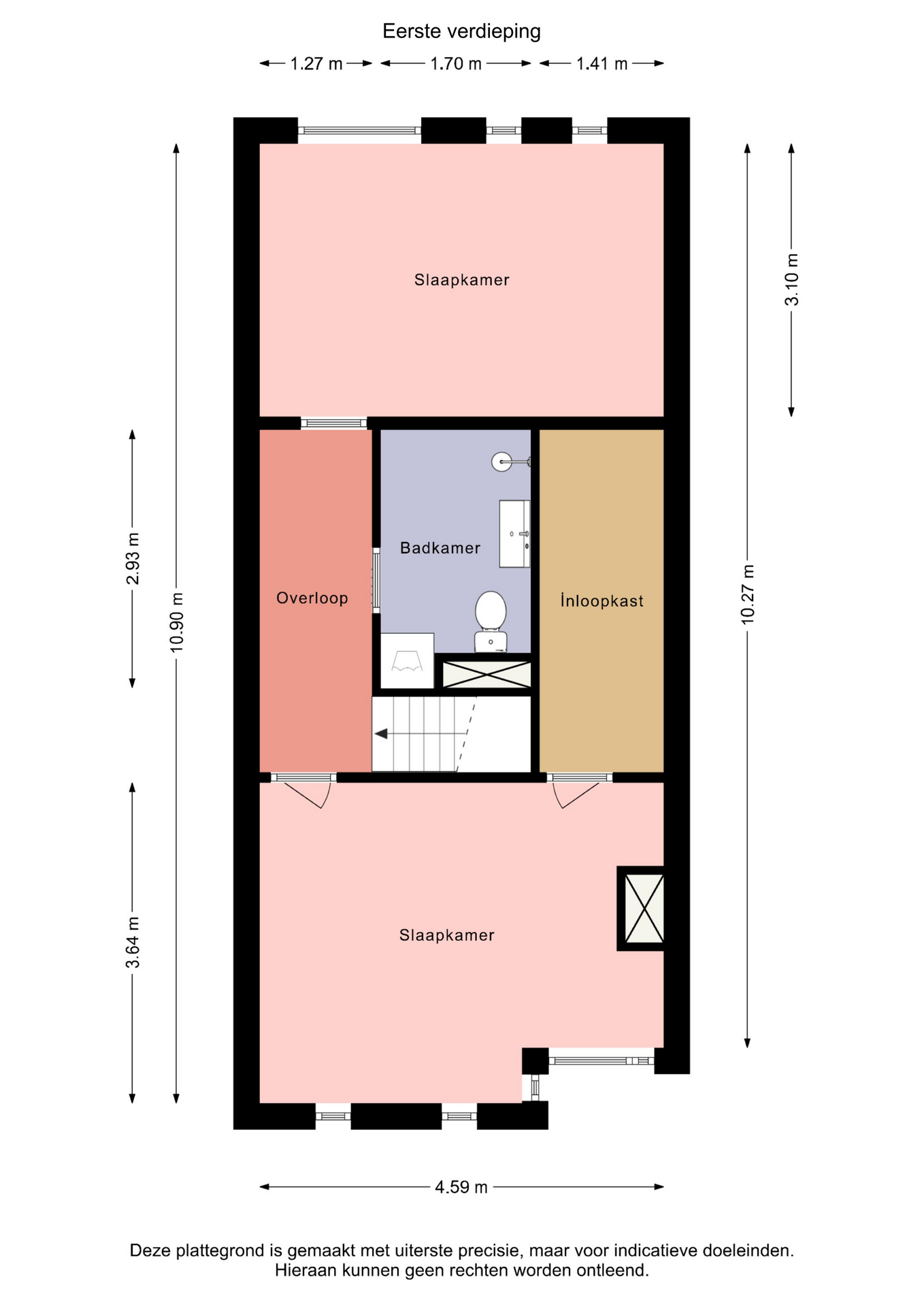 Via de rechte trap bereikt u de overloop, die toegang biedt tot twee ruime slaapkamers en de badkamer.