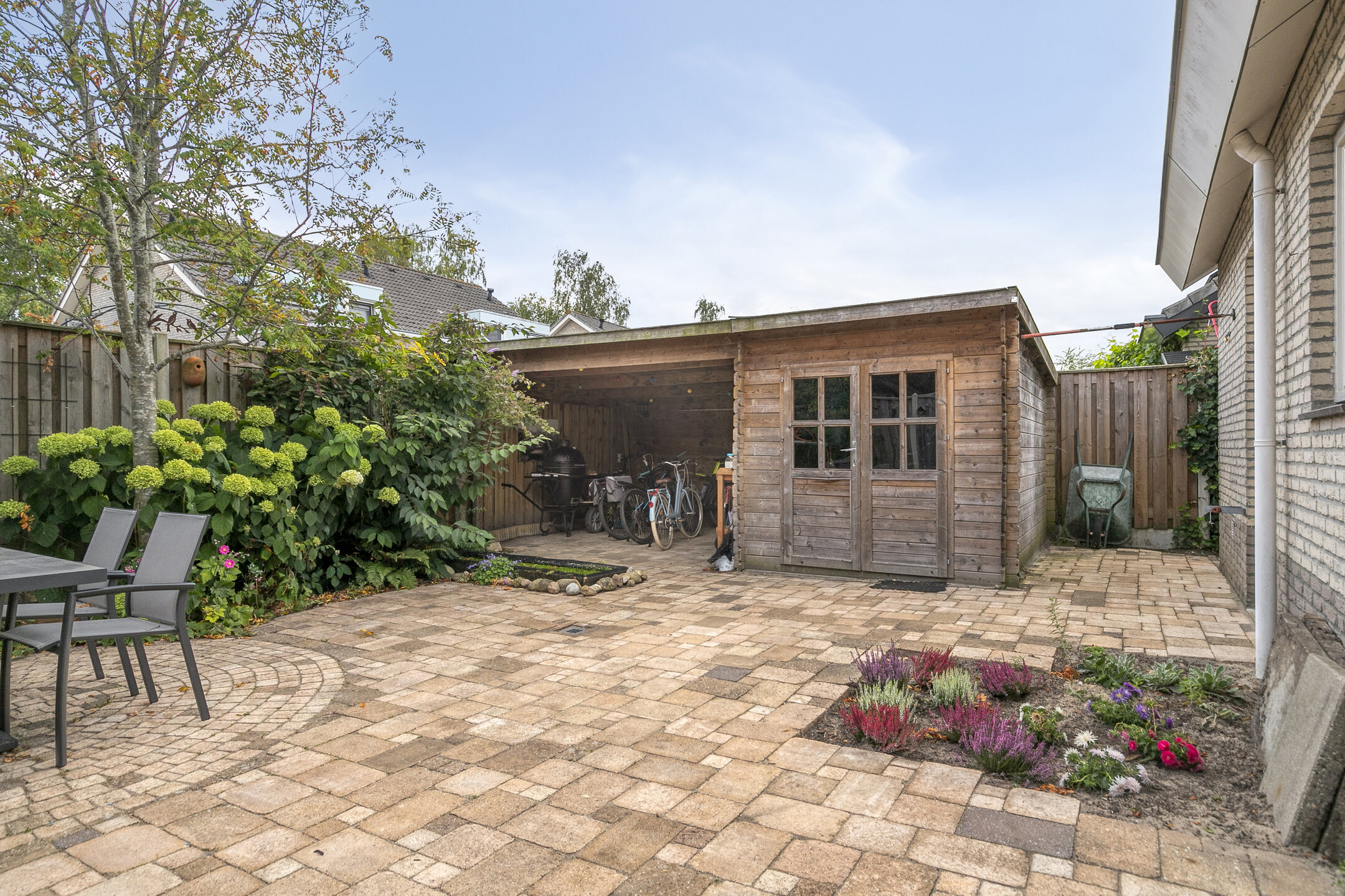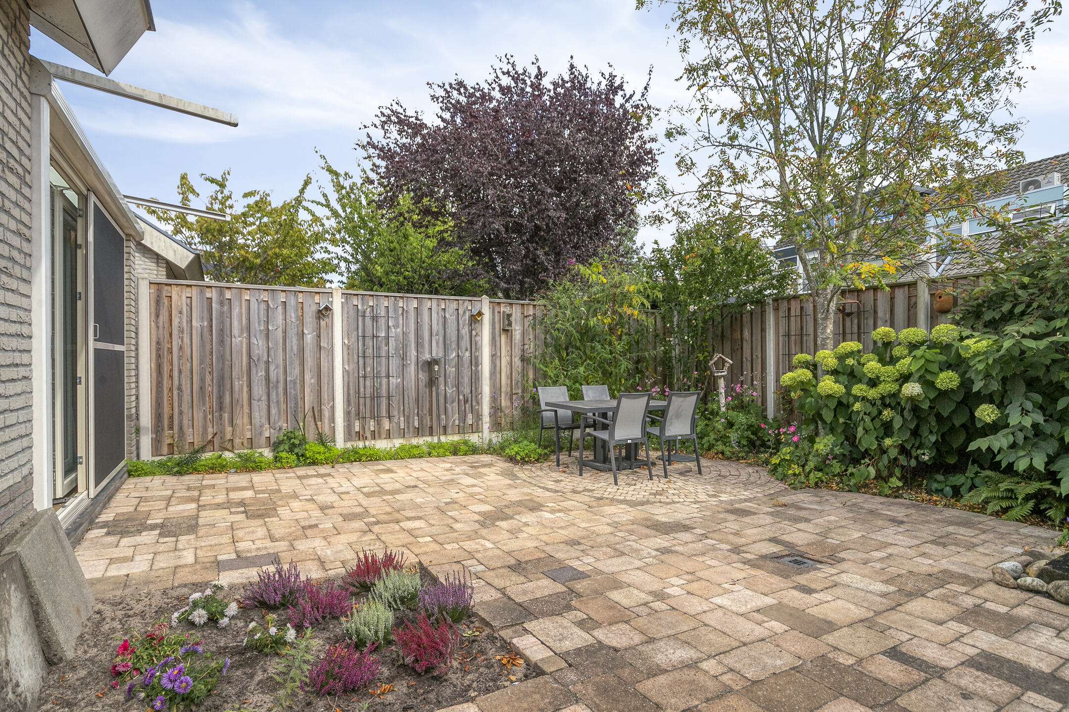 De tuin heeft een fijne zonnige ligging op het zuiden, is bestraat en voorzien van diverse borders. Er is een grote overkapping geplaatst naast de houten berging en hier is voldoende ruimte om te kunnen zitten of voor een eventuele buitenkeuken of opslag. Via de zijkant kunt u naar uw voortuin lopen wat ideaal is voor fietsen.