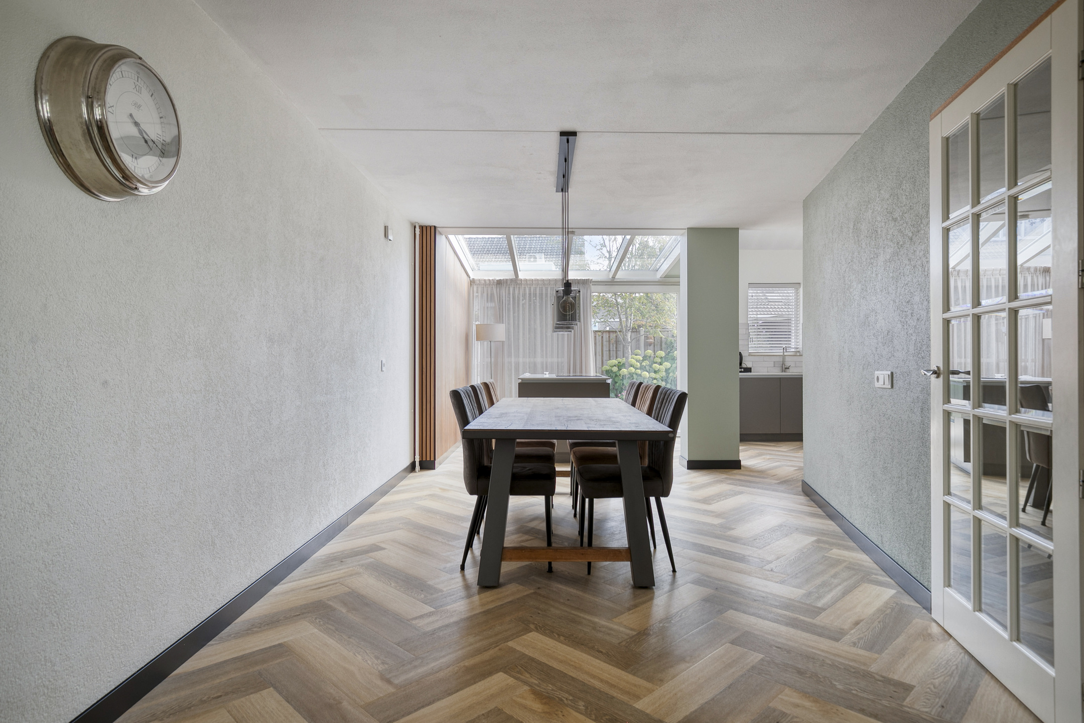 - Begane grond voorzien van vloerverwarming met visgraat PVC vloer;
