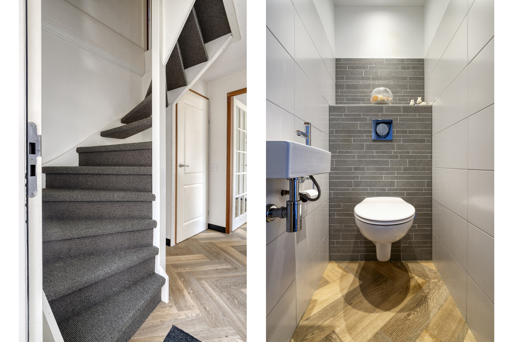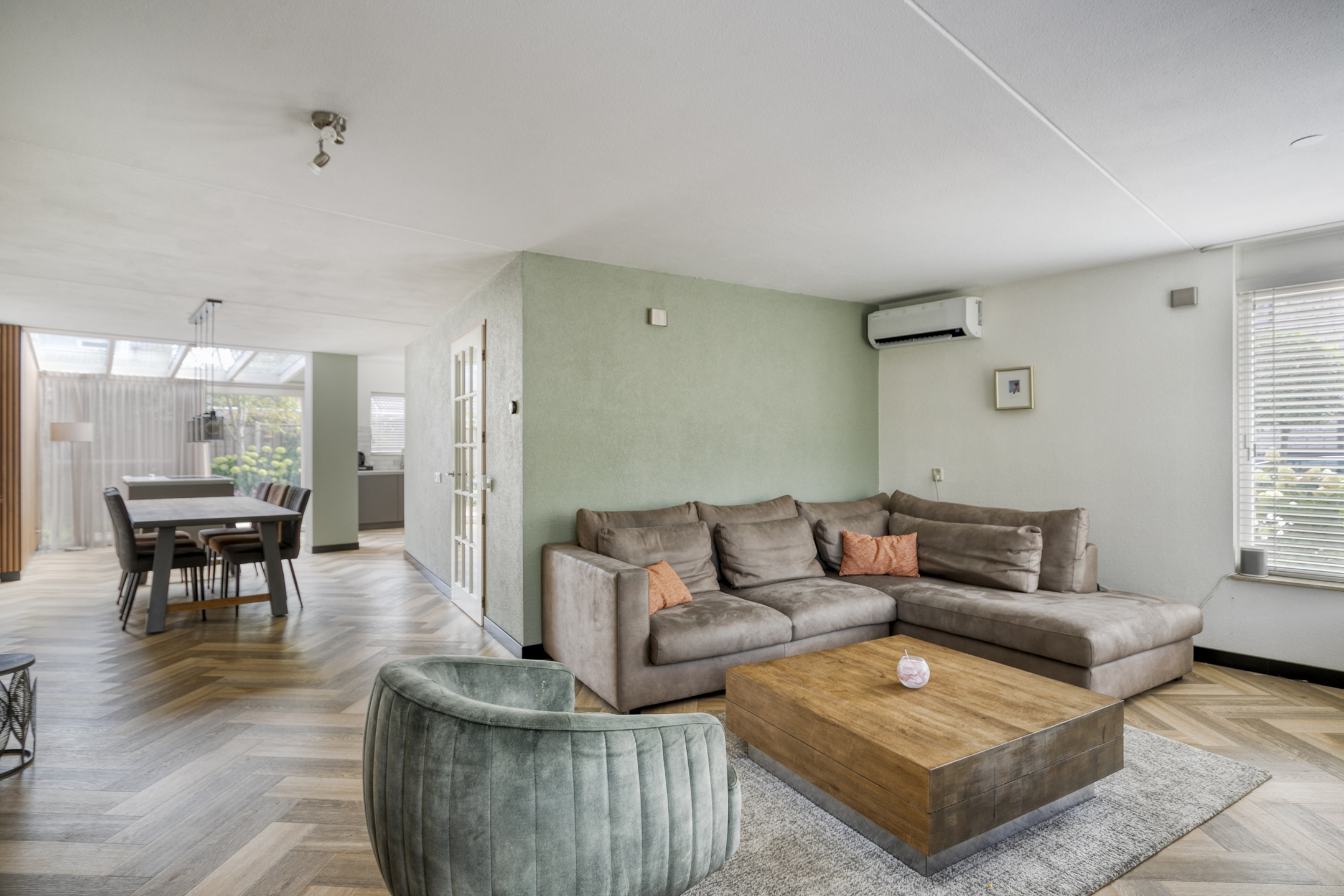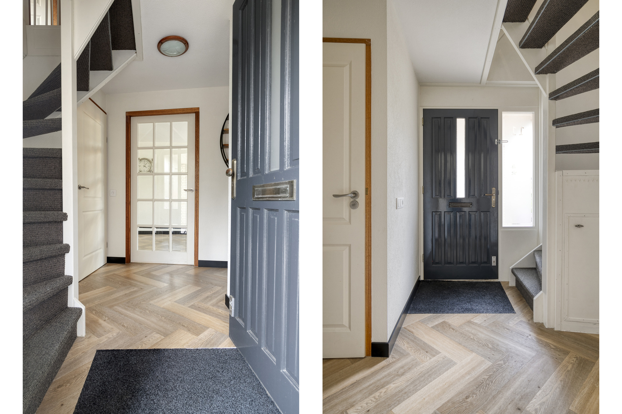 Aan de voorzijde van de woning heeft u een oprit, een zijpoort naar de achtertuin en toegang tot de woning middels uw voortuin. U komt de woning binnen in de ruime hal met toiletruimte met fonteintje. De hal beschikt verder over een meterkast met glasvezel aansluiting, trapopgang naar de 1e verdieping met daaronder een bergkast en een kast voor de verdeler van de vloerverwarming. Vanuit de hal bereik u de gerenoveerde woonkamer en keuken. Er is een mooi visgraatvloer gelegd van PVC (gelijmd), omdat dit het beste werkt met de vloerverwarming die over de gehele begane grond ligt. Aan de voorzijde heeft u de zithoek van de woonkamer en hier is in 2021 een airco geplaatst. De zithoek is heerlijk ruim en hier kunt u genieten van het vrije uitzicht wat u aan de voorzijde van de woning heeft. In het tussenstuk heeft u ruimte voor het plaatsen van een grote eethoek en bereikt u de grote open keuken die in 2023 geheel vernieuwd is. Het kookeiland is in de aanbouw geplaatst. Hier heeft u veel lichtinval door de lichtstraat en de grote schuifpui met kiep functie en een hordeur. Bij veel zon kunt u gebruik maken van de elektrische zonwering die op de aanbouw is geplaatst.