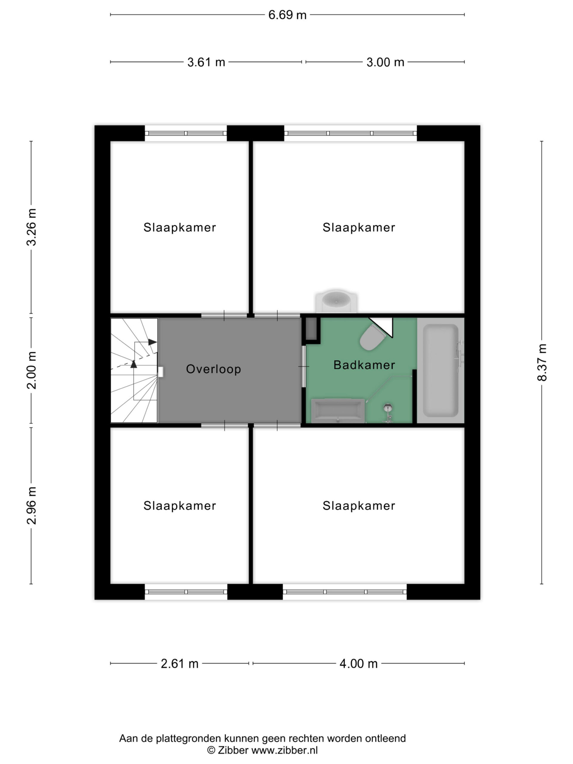 Aan de achterzijde liggen twee slaapkamers, waarvan de grootste is voorzien van een handige wastafel. Aan de voorzijde vindt u nog twee slaapkamers, eveneens licht en prettig van formaat. De gehele verdieping is voorzien van rolluiken en grotendeels van horren, wat zorgt voor comfort in elk seizoen. De moderne laminaatvloer loopt drempelloos door in alle kamers, wat een mooi geheel vormt.