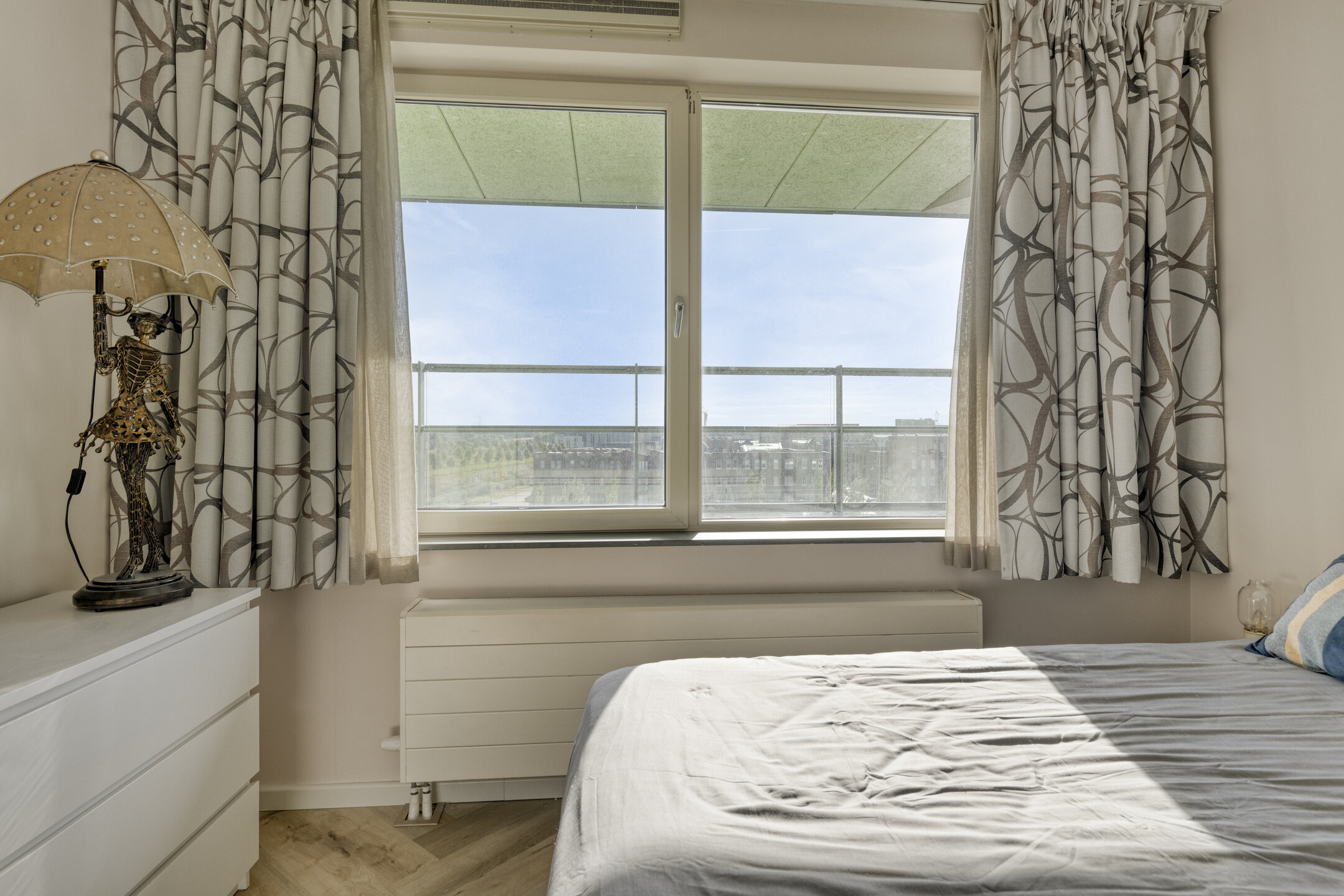 De grote slaapkamer is gelegen aan de galerijzijde en beschikt over voldoende ruimte voor het plaatsen van een bed en er is een inbouwkast met schuifdeur. Vanuit de hal bereikt u tevens de moderne badkamer (2021) met douchecabine, een wastafelmeubel en een vrijhangend toilet. De badkamer is voorzien van vloerverwarming. Naast de badkamer is een separate wasruimte met de wasmachine aansluiting en de mechanische ventilatie box. Het gehele appartement is voorzien van een nieuwe PVC visgraatvloer.