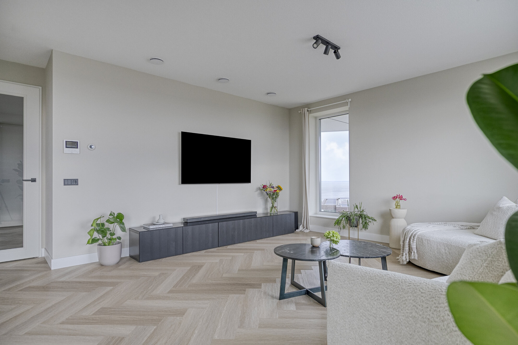 U betreedt het appartement in de hal met garderobe, de meterkast met glasvezelaansluiting en stadsverwarming en het toilet. De toilet ruimte is voorzien van een zwevend toilet met fonteintje. Vanuit de hal bereikt u de diverse ruimtes en u loopt door naar het woongedeelte. U ervaart meteen het fantastische uitzicht! De woonkamer is royaal en aan de linkerzijde heeft u ruimte voor uw grote zithoek. Er is veel lichtinval door de grote raampartijen en het raam in de zijgevel, doordat u op de 14 verdieping zit is er geen inkijk van buitenaf! Vanuit de woonkamer heeft u toegang tot het royale balkon welke is gelegen op het oosten. Vanaf zonsopkomst tot een uur of half 3 ’s-middags kunt u genieten van de zon op uw balkon. Vanaf het balkon heeft u een schitterend vrij uitzicht over het mooie duinlandschap. Als de nacht valt heeft u een prachtig beeld van lichtjes die het donker doen kleuren.